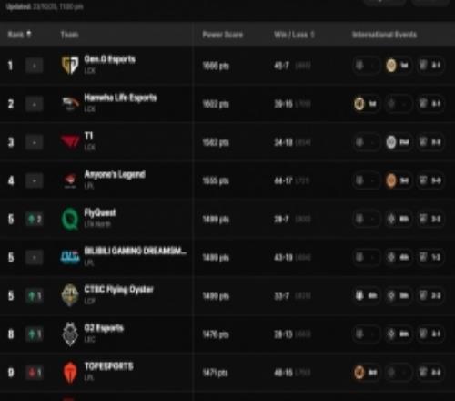 体育资讯10月24日称 拳头官网更新全球战队实力排名: