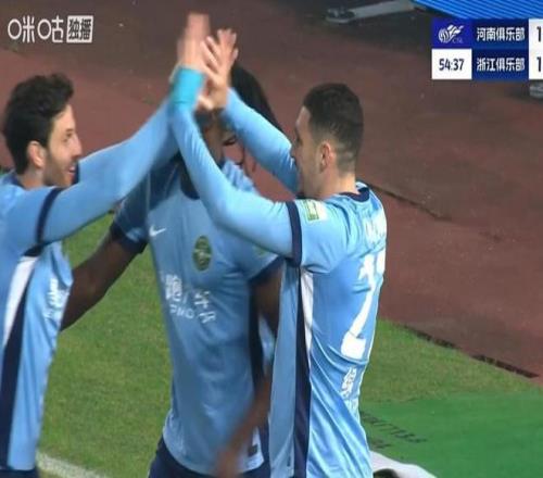 第55分钟,王钰栋左路下底送精准过顶,亚戈-卡列洛小角度打门得手,浙江1-1扳平!