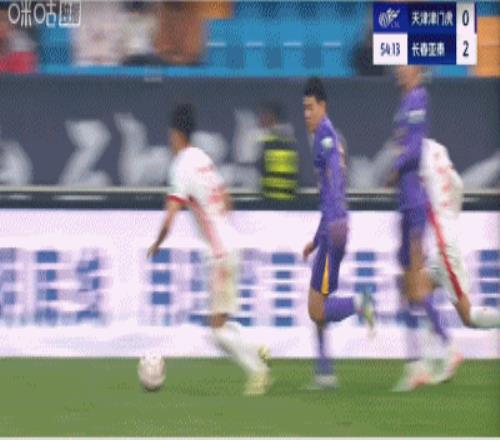 第90+1分钟,门前乱战!贺一然头球顶进自家球门,津门虎扳回一城,1-2!