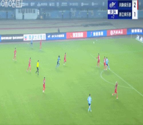 第90+2分钟,李提香送过顶长传,精准找到了亚戈,亚戈在两名河南队外援中卫的防守下领球打门得手,梅开二度,个人能力太强了!