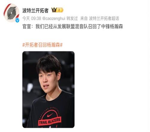 北京时间11月3日,开拓者队官方宣布,已从下属发展联盟球队撕裂之城混音召回中国球员杨瀚森,小杨将随队参加下一场对阵湖人的比赛。距离球队将他下放,仅仅过去一天。