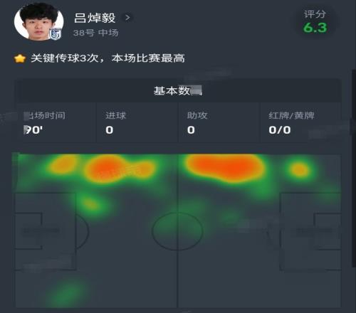 截至中超第29轮:吕焯毅以63次的过人总数,位居中超本土同位置第一;以4次助攻数,位居本土同位置第三。