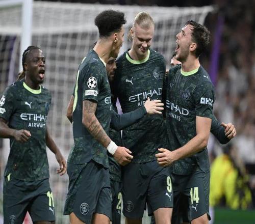 半场结束前,哈兰德禁区内遭吕迪格抱摔倒地,主裁判判罚点球,挪威锋霸操刀主罚稳稳命中将比分反超,命中个人第54场欧冠比赛的第55粒进球。本以为下半场全力反扑的皇马能改写比分扭转颓势,但“银河战舰”却未能如愿,就这样看着曼城从伯纳乌带走关键三分。值得一提的是,这场比赛仅仅是曼城队史第二次在客场击败皇马,上一次是在2020年2月,当时依靠着德布劳内的传射建功,曼城欧冠1/8决赛首回合以同样的比分击败对手取胜。