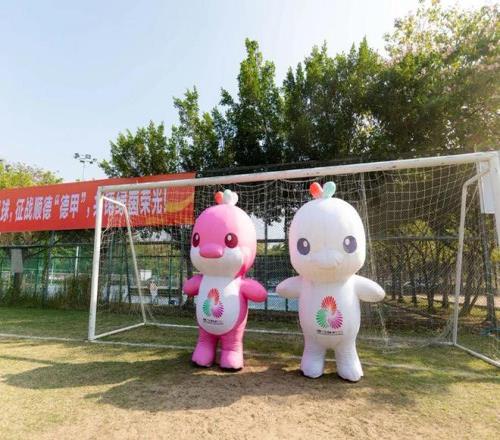 与此同时,青少年足球派对也如火如荼地展开,现场准备了多个趣味十足的互动游戏摊位,甚至还邀请了第十五届全运会的吉祥物“喜洋洋”“乐融融”和顺德酒厂吉祥物前来互动,吸引了不少青少年前来参加,现场孩子们的欢声笑语与欢呼声此起彼伏,为选拔赛增添了几分童趣。