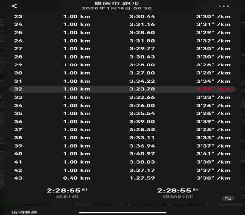 A谈不上轻松吧,因为并没有一定要破230的压力。我觉得一个跑者,当训练数据都掌握在自己手中,你的能力自己是清楚的。跟周边跑友交流,才发现不是练到位就一定能在比赛中发挥出来,而是需要等天时地利人和。不着急,等呗。25年下半年状态最好的时候没有去比赛,去比赛时状态又没了,这也没辙,顺其自然,接受就好。