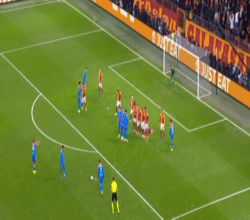 第90+4分钟,加拉塔萨雷最后时刻威胁射门,奥布拉克救险